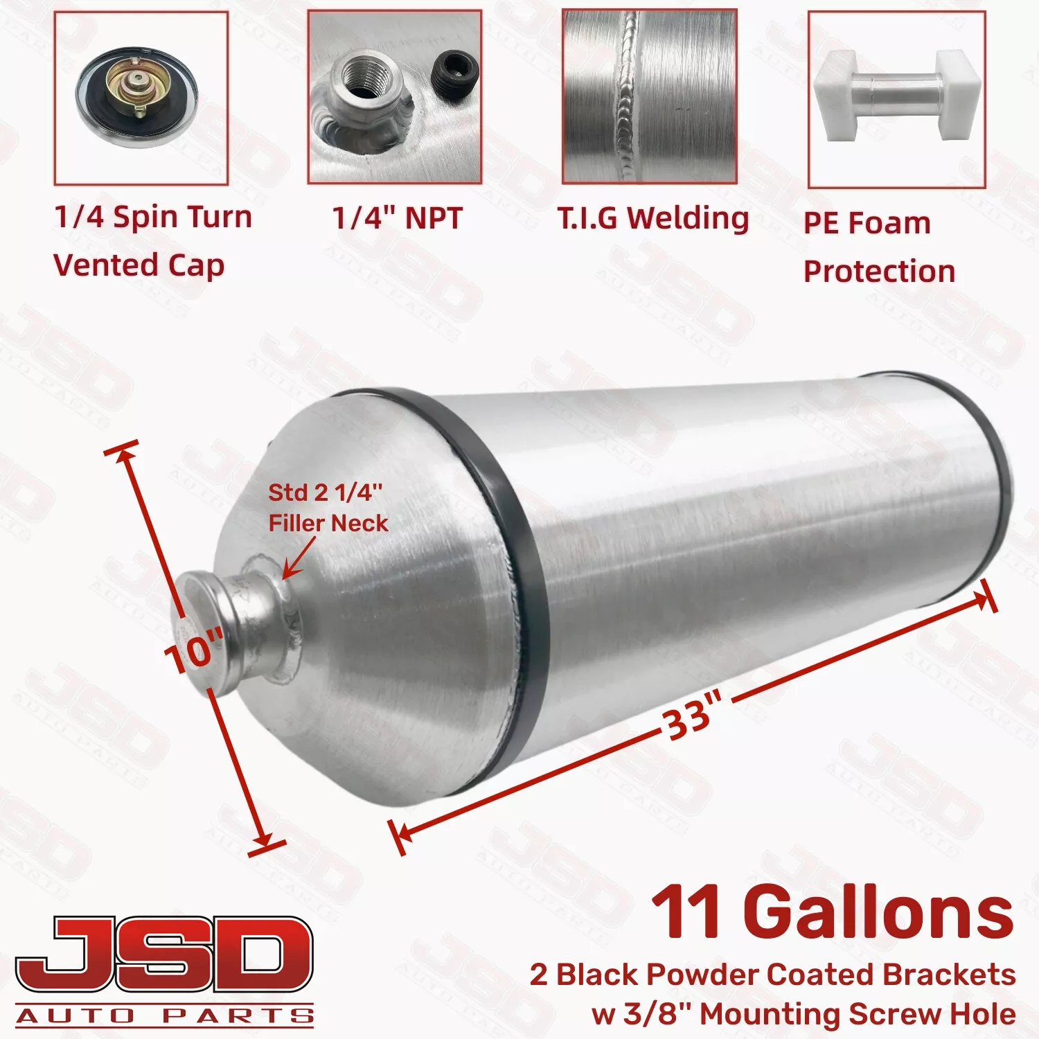M622 JSD Aluminum Spun Fuel Tank 10x33 Vertical Fill 11 Gallon 1/4'' NPT