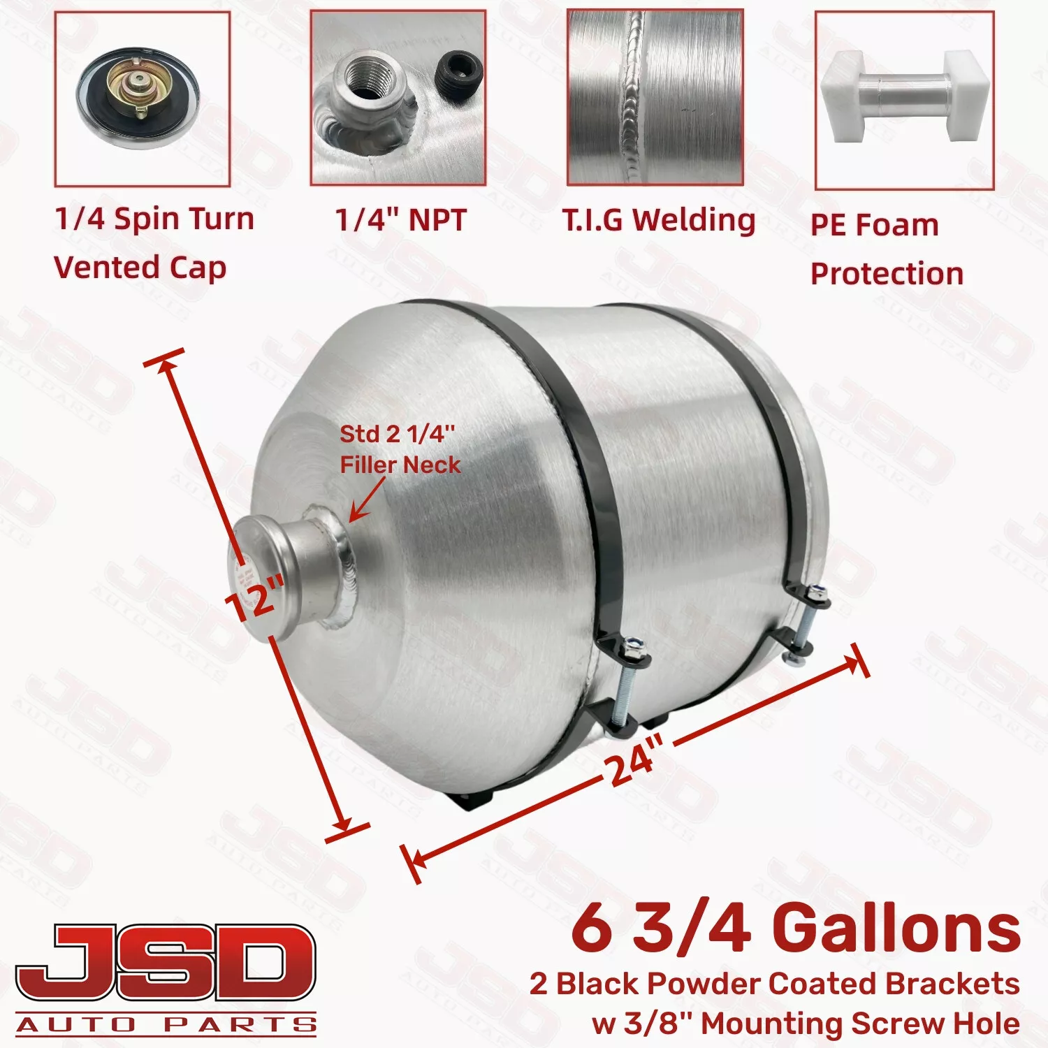 The JSD Aluminum Spun Fuel Tank is designed for durability and efficiency. Its lightweight aluminum construction ensures ease of handling and installation. The vented gas cap provides optimal ventilation, preventing pressure build-up. The included bracket holders make mounting the tank a breeze, ensuring a secure and stable setup.